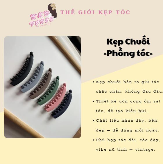 Kẹp Phồng Chuối là phụ kiện tóc không thể thiếu dành cho các cô nàng yêu thích mái tóc phồng tự nhiên và gọn gàng. Thiết kế đặc biệt của kẹp giúp nâng phần tóc ở gáy hoặc đỉnh đầu, tạo độ phồng tự nhiên mà không cần dùng đến các dụng cụ hoặc sản phẩm tạo kiểu phức tạp.